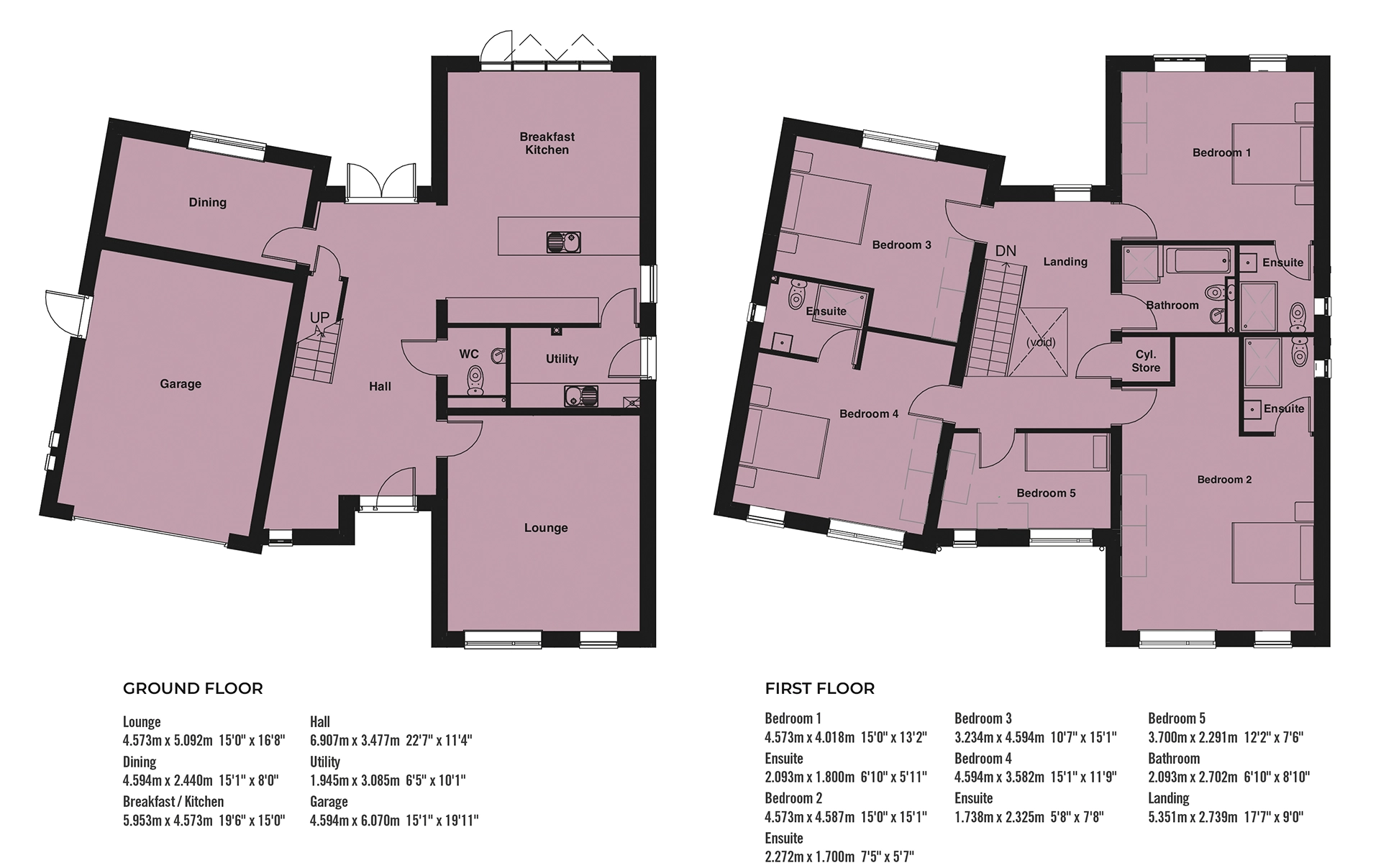 The upper floor comprises five spacious bedrooms, three of which are en-suite, and a house bathroom.